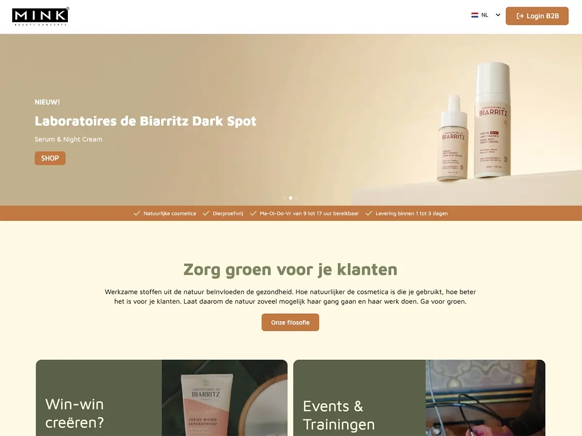 Mink Professional uses the Orderchamp B2B Portal with our template. The template is quick to install and easy to adapt to your own branding.